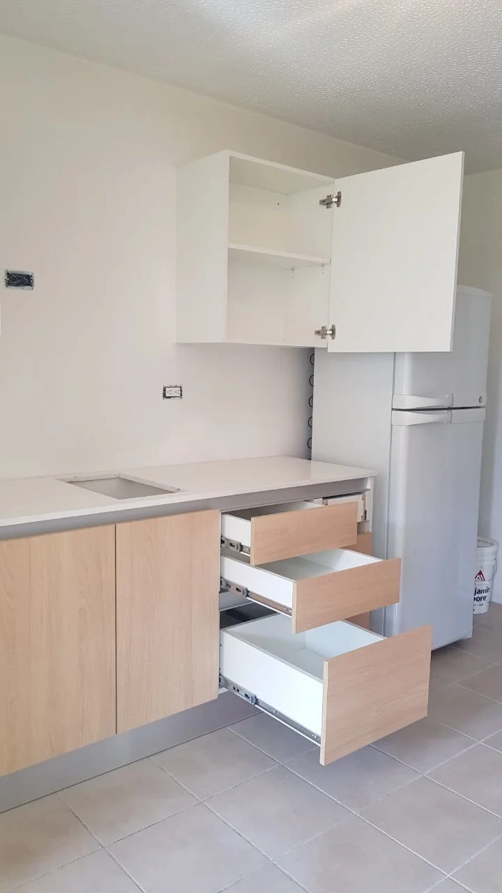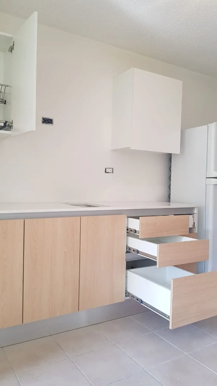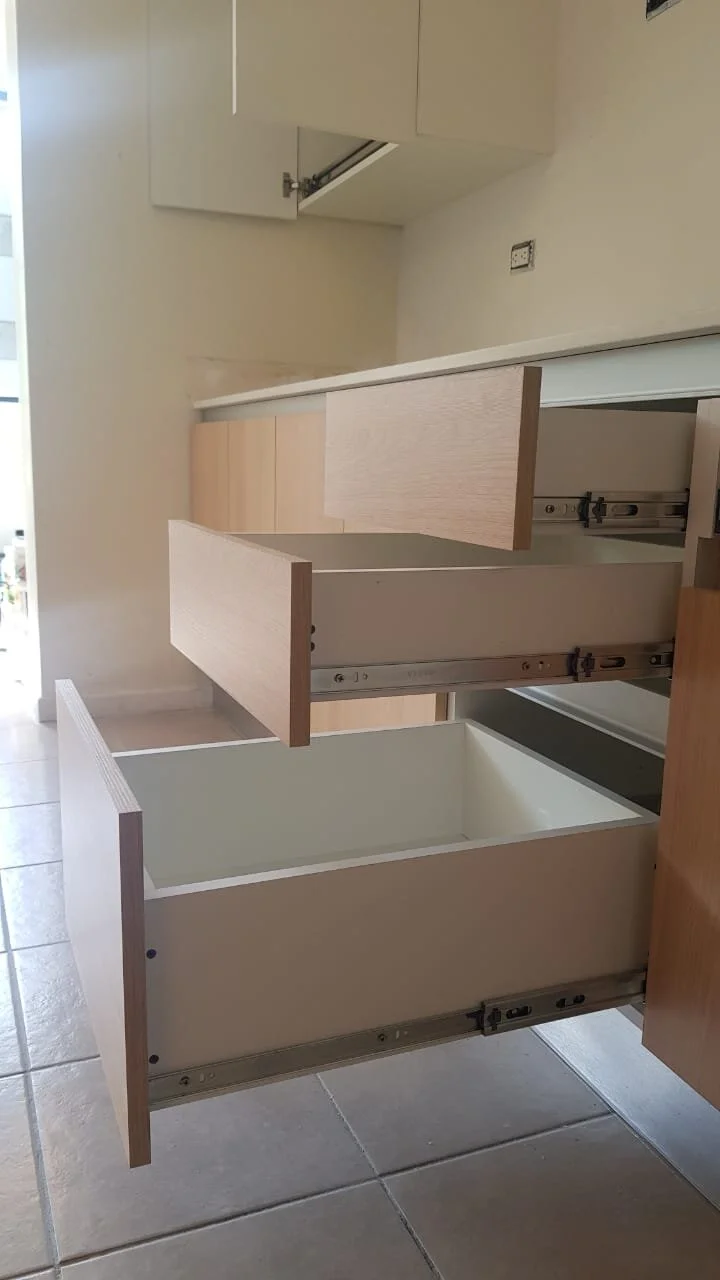 MUEBLE DE COCINA CON HERRAJES BLUM / CUERPOS DE LOS MUEBLES EN 18MM HIDROFUGO / CHAPETA 2MM / RODAPIE DE ALUMINIO / PATAS PLÁSTICAS / MÓDULOS ESPECIALES: SECADOR DE TRASTES, FREGADERO / TODO CON CIERRE LENTO / HERRAJE GOLAS / RODAPIE EN ALUMNIO / PUERTAS CON BISAGRAS SOFT CLOSE