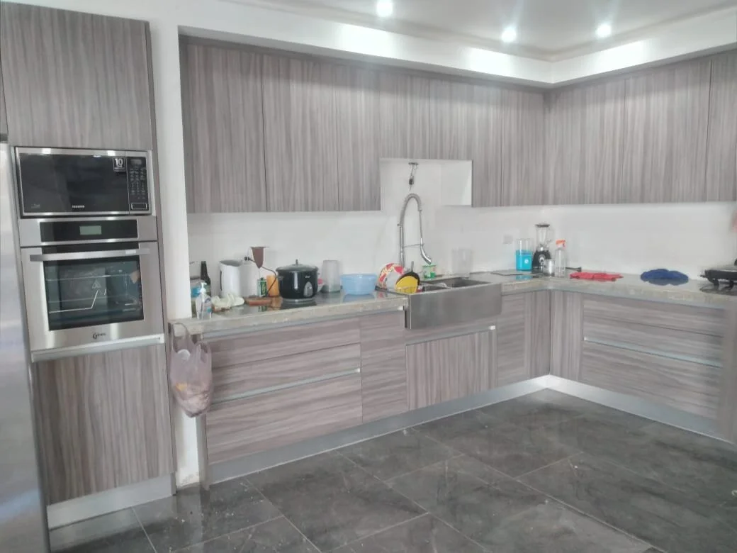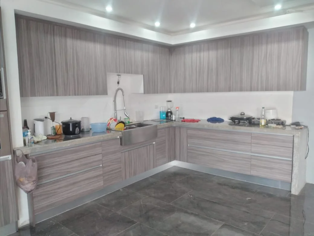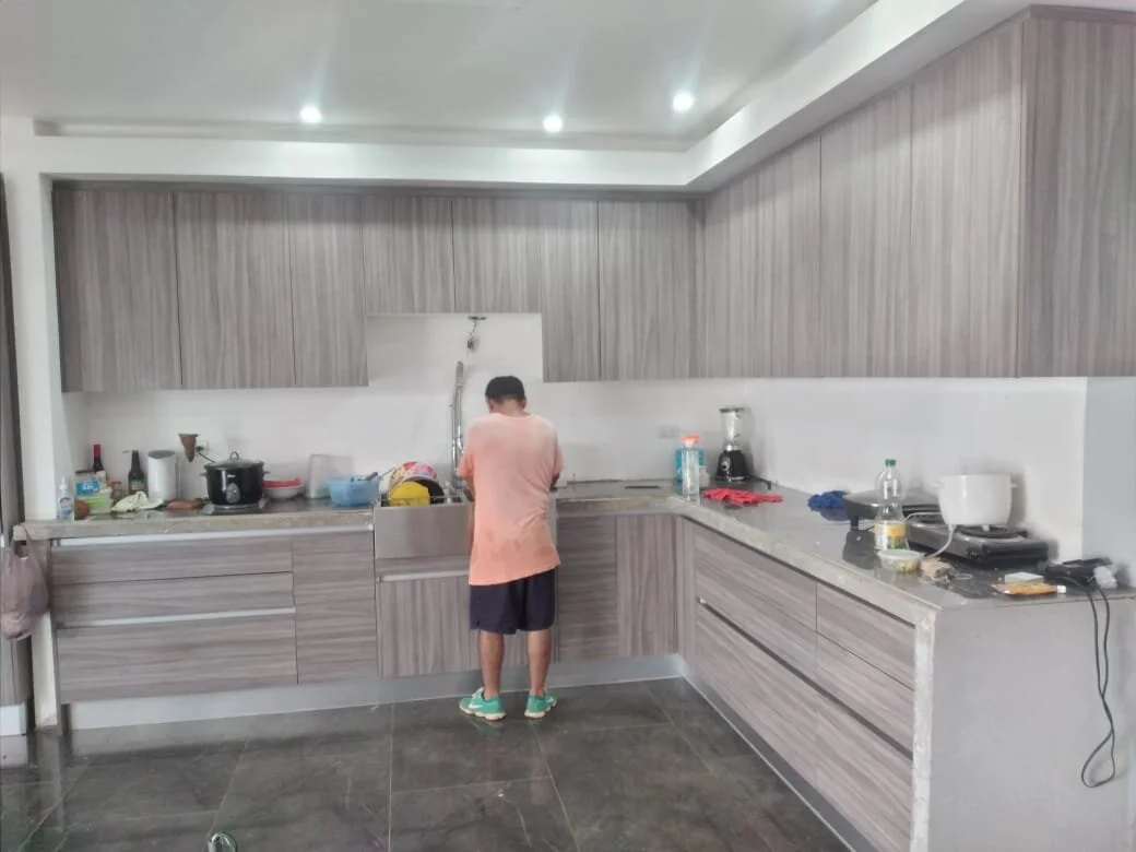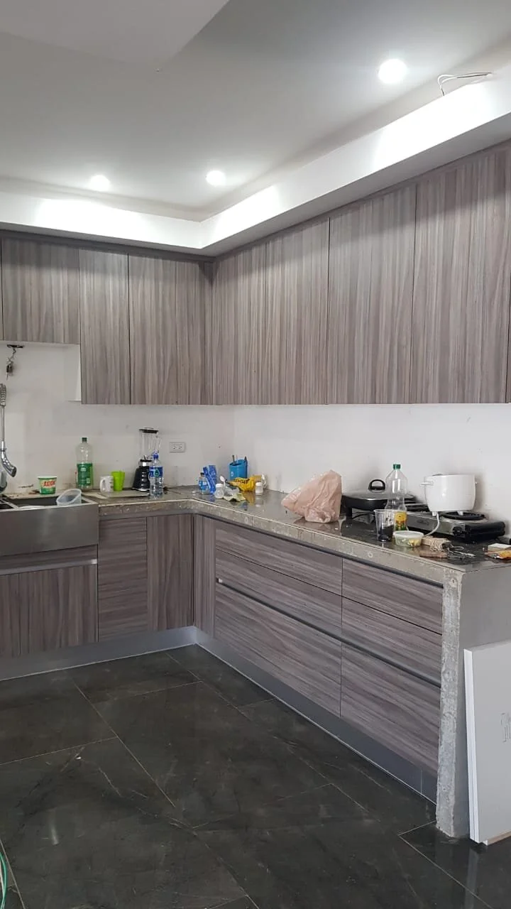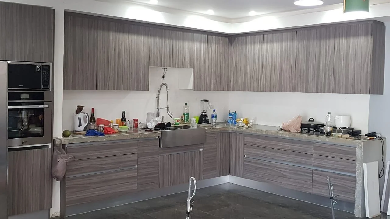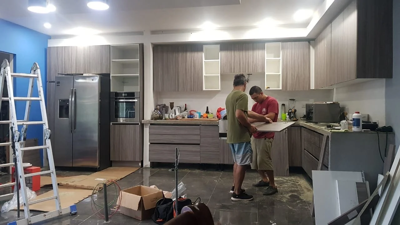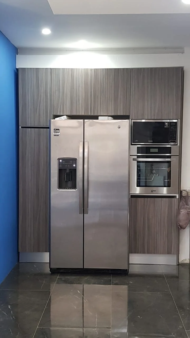 MUEBLE DE COCINA CON HERRAJES BLUM / CUERPOS DE LOS MUEBLES EN 18MM HIDROFUGO / CHAPETA 2MM / RODAPIE DE ALUMINIO / PATAS PLÁSTICAS / MÓDULOS ESPECIALES: BASURERO, ESPECIERO / TODO CON CIERRE LENTO / HERRAJE GOLAS / RODAPIE EN ALUMNIO / PUERTAS CON BISAGRAS SOFT CLOSE